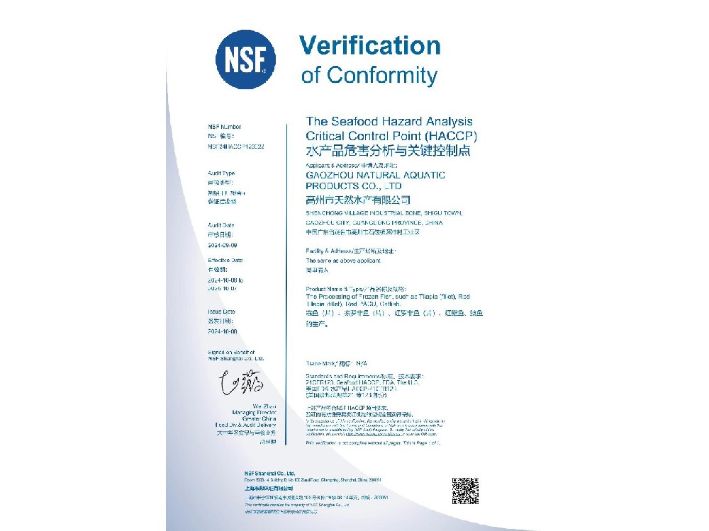 天然水產有限公司產品主要有凍羅非魚片、凍羅非魚(全魚、一去、二去、三去)、帶皮羅非魚片、鹽漬羅非魚、羅非魚排、酸菜魚片、開背魚(烤魚);凍紅羅非魚(全魚、一去、二去);紅鯧魚、鯰魚等產品。產品主要銷往···